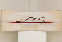 Hand(Left) ‘Hand(Left)’ is a work produced in 2020. It was first exhibited at the 21st Department of Fine Arts Graduation Exhibition ‘Crown Shyness,’ held from December 21, 2020 to January 21, 2021, at Korea National University of Arts. A tree branch is suspended over a curved wooden panel spray-painted in straight linear patterns. The title is derived from a specific part of the human body. -