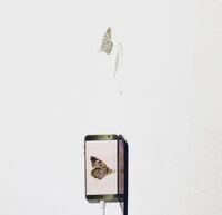 Eros&Psyche ‘Eros&Psyche’ is a work produced in 2020. It was first exhibited at ‘Chestnut tree-Dokkaebi-Bunjae’, held from September 29 to October 14, 2021, at Gallery175 (currently K-ARTS Art Space). The work features two photographs of a butterfly's cross-section, mirrored and displayed on the screens of two different smartphone models. Both devices are connected to chargers. -