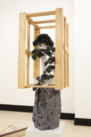 Photograph of ‘Back’ by Daul RHEEM exhibited in ‘Crown Shyness’ at the Korea National University of Arts from December 21, 2020, to January 21, 2021 This is a Photograph of ‘Back’ by Daul RHEEM exhibited in ‘Crown Shyness’ at the Korea National University of Arts from December 21, 2020, to January 21, 2021. The file size is 148 KB, and the format is JPG. It consists of a bonsai tree with a wooden crate placed over a grey-painted tree stump. -
