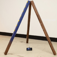- ‘Visage’ is a work produced in 2020. It was first exhibited at the 21st Department of Fine Arts Graduation Exhibition ‘Crown Shyness’, held from December 21, 2020 to January 21, 2021, at Korea National University of Arts. Wooden beams lean together in a triangular formation. One beam is painted blue and has three-dimensional letters spelling ‘OLLINGE’ attached to it. Another beam bears a label indicating the wood type (WALNUT) and its original dimensions (60 × 60 × 1500 cm). At the vertex where the three beams meet, a smartphone device is suspended by thread, through which a video is displayed. The title is derived from a specific part of the human body.