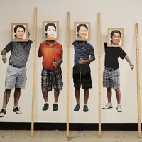 - Wood lumber, digital print, wooden frame, mixed media
