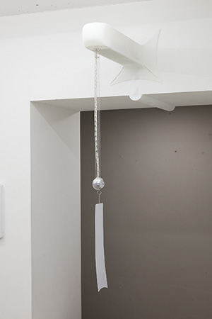 This installation work was exhibited as part of "Rheem, Daul" at sangheeut from August 23 to September 22, 2024. When the bells of the work move due to wind or the passage of people, recorded bell sounds are played through a speaker installed inside the white object positioned at the top of the installation.